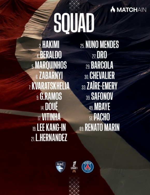 直播吧2月28日訊 巴黎將在本輪法甲對陣勒阿弗爾,球隊官方也公布了本場比賽大名單,具體如下: