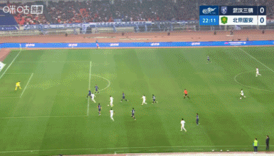 第45分鐘,王剛右路底線位置無人盯防的傳中,禁區(qū)內法比奧頭槌破門!北京國安1-0領先武漢三鎮(zhèn)↓