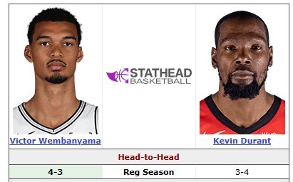 賽后,文班亞馬和杜蘭特的交手戰(zhàn)績來到5勝3負,稍占上風。