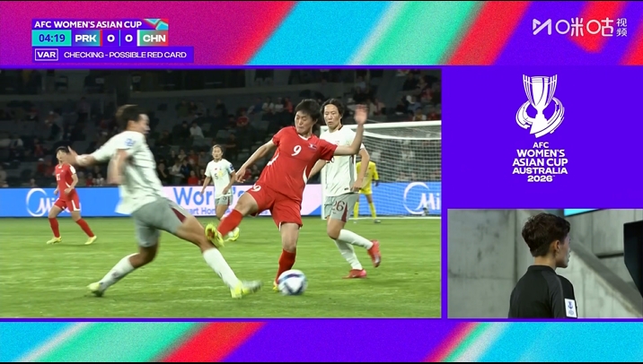 比賽第3分鐘,邵子欽遭金成慶蹬踏膝蓋,裁判第一時(shí)間吹罰犯規(guī)但未出牌,隨后VAR介入,裁判到場(chǎng)邊回看后最終向金成慶出示黃牌。
