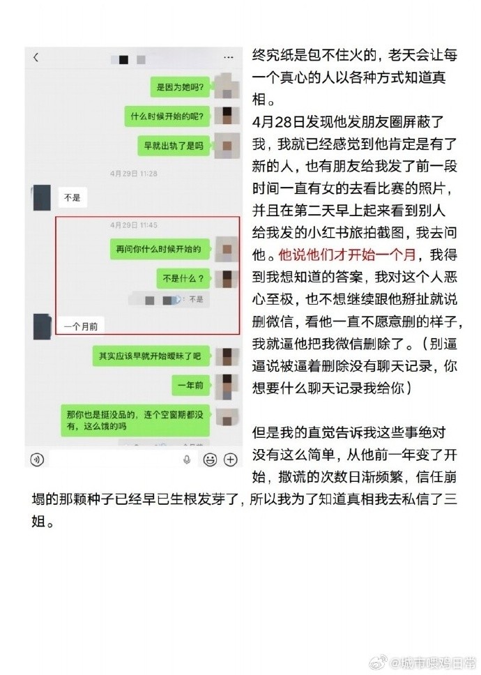 @城市喂雞日常曬出多張與L某小三的聊天紀(jì)錄截圖,并寫道:“《臆想癥三姐篇》”,詳見(jiàn)下圖: