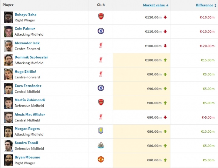 直播吧03月09日訊 德轉(zhuǎn)今日更新英超球員身價。