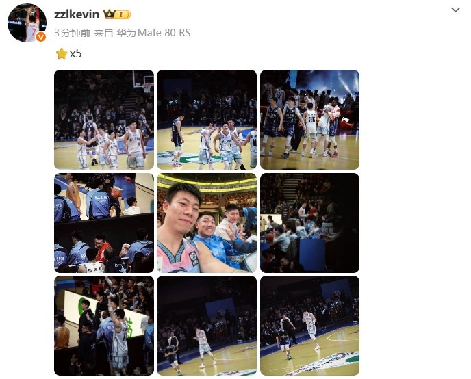 張鎮(zhèn)麟曬出自己在本次全明星賽場(chǎng)內(nèi)外的一組照片,配文寫道:“?x5”