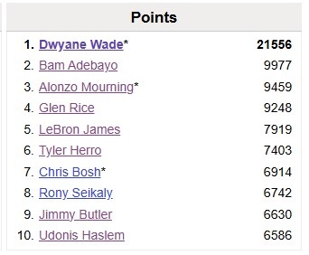 他也成為熱火隊史韋德之后,第二個總得分破萬的球員。