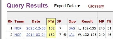 此前紀(jì)錄是132分,他們?cè)?014和2025年2次做到。