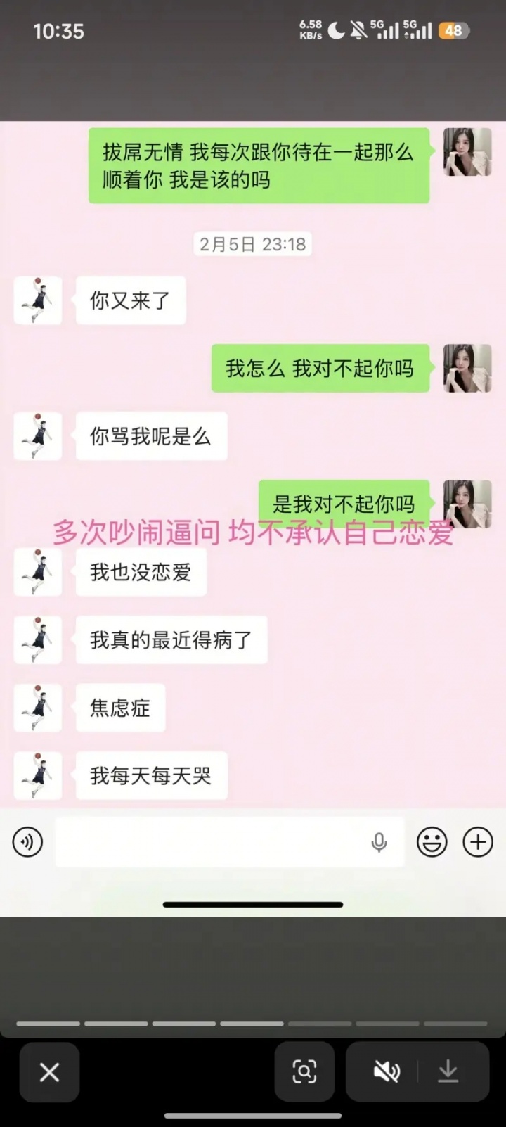 ZW曬聊天記錄,控訴郭昊文在她發(fā)抖音之后終于承認自己有女友,郭昊文還稱自己得了焦慮癥,“每天每天哭”。