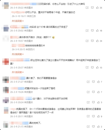 此外,銅梁龍首個中場主場比賽的球票定價也被球迷廣泛“吐槽”過高。