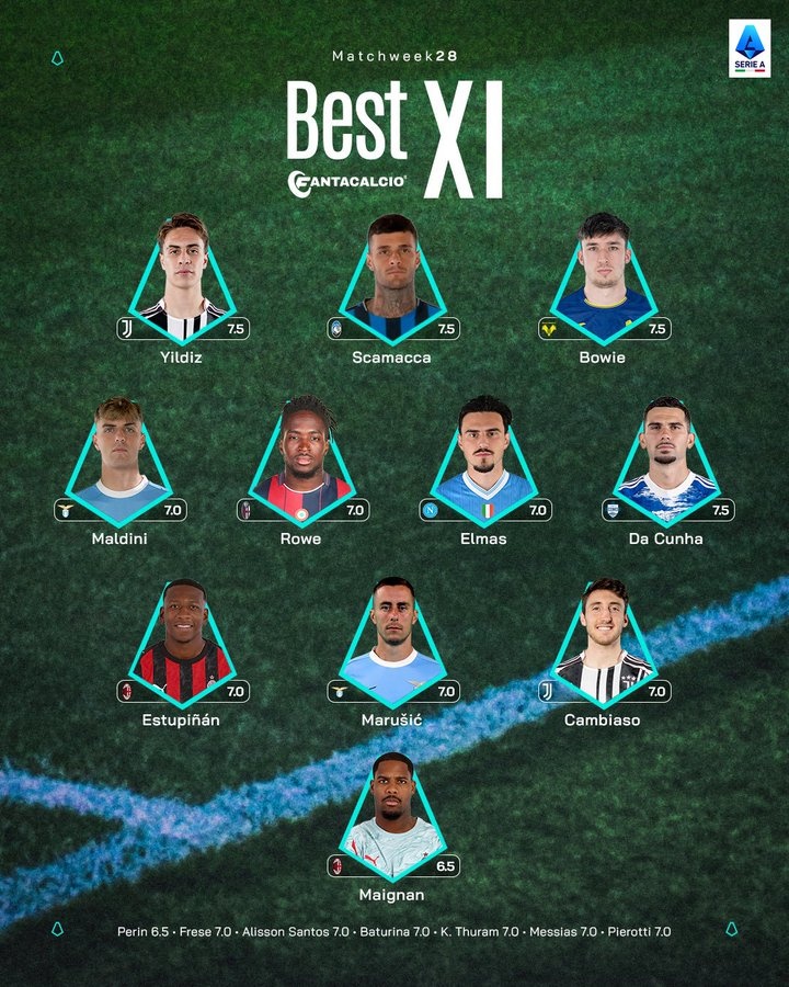 直播吧3月11日訊 意甲第28輪戰(zhàn)罷,聯(lián)賽官方列出本輪最佳陣容,邁尼昂、伊爾迪茲、斯卡馬卡在列。
