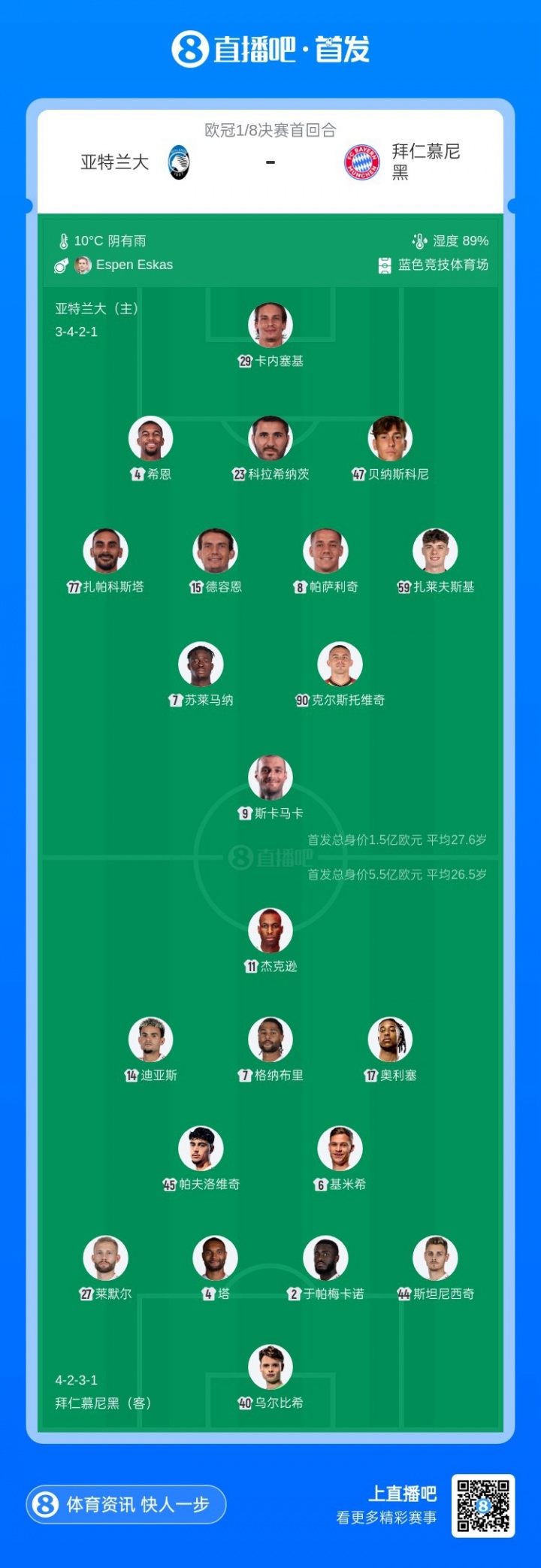 亞特蘭大替補(bǔ):31-羅西、57-斯波蒂耶洛、3-科索努、5-巴克、6-穆薩、10-薩馬爾季奇、16-貝拉諾瓦、19-吉姆西蒂、45-瓦瓦索里、48-卡薩、69-阿哈諾