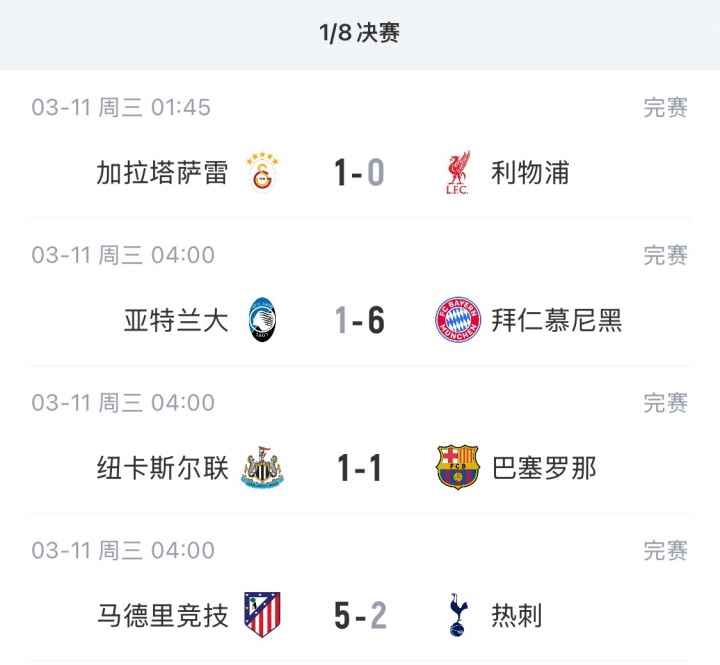 1/8決賽首回合率先進(jìn)行的4場(chǎng)比賽